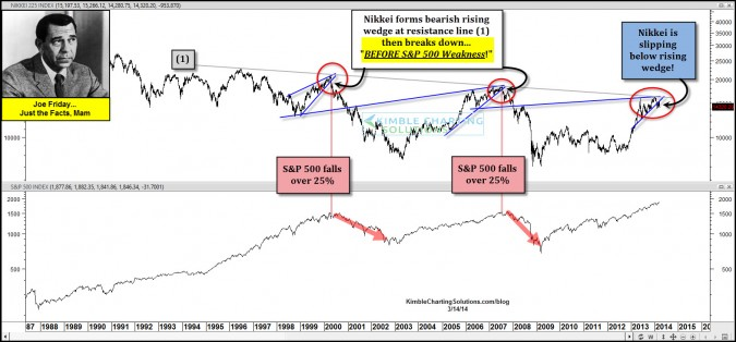 I already went on the record stating that I thought we could see downside action all the way to the 1,650ish area, which is approximately 12% off the highs. Kimble provided a chart last Friday showing the long-term action correlation between the Nikkei and S&P 500 since 2000. Observe:
