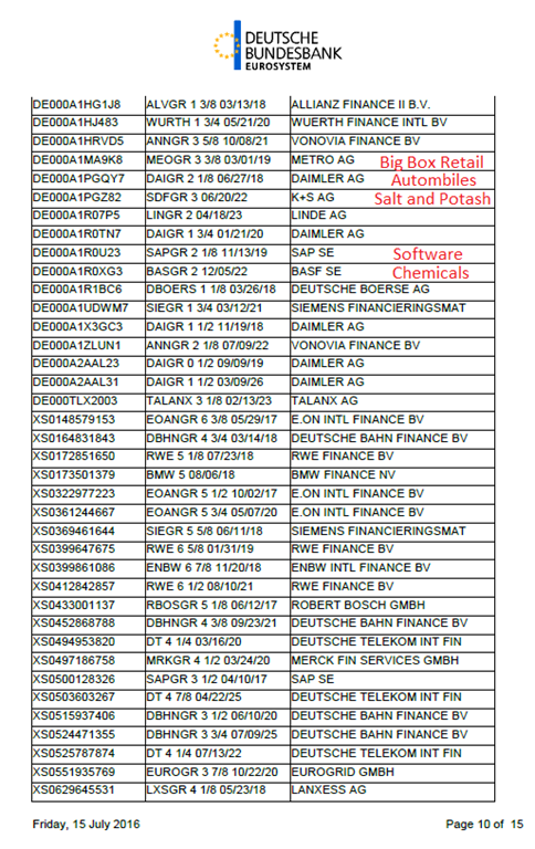 The bonds of the staples of the German business world and economy are on the German central bank’s balance sheet available for lending. Which from my last post, you know what that means.