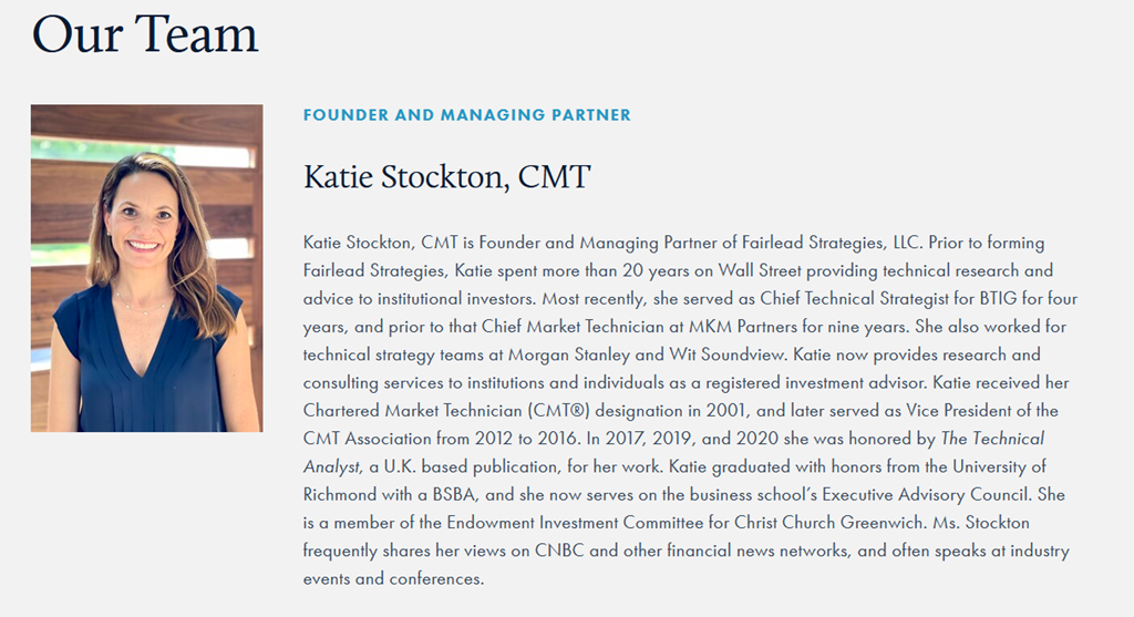 That bullish analyst quoted in the article was Kate Stockton of Fairlead Strategies. Have a read of her bio. About as accomplished as you can get for being a chartist.