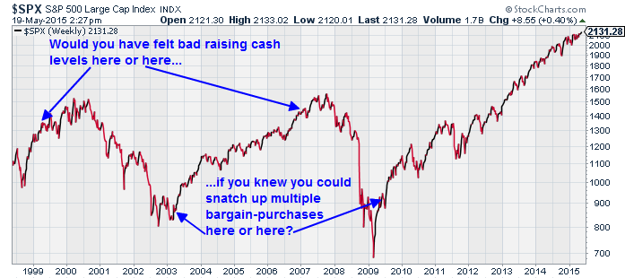 I’ve been sharing my thoughts for some time now on the potential benefits of raising cash levels. I don’t think it’s alarmist. I continue to think it’s prudence. I’m not saying exit the markets. Just start to build cash levels. Examine the chart below with the obvious benefit of hindsight.