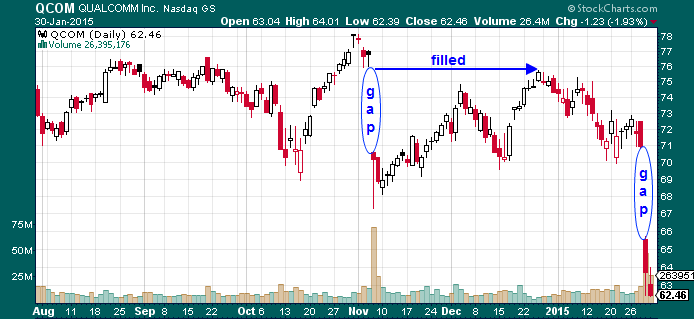 For true fiends out for any action, have a look at QCOM’s daily chart. It’s presenting the potential for a gap fill and long-time readers know how much I love the action of the snap-back. No further comment is necessary. The chart says it all.