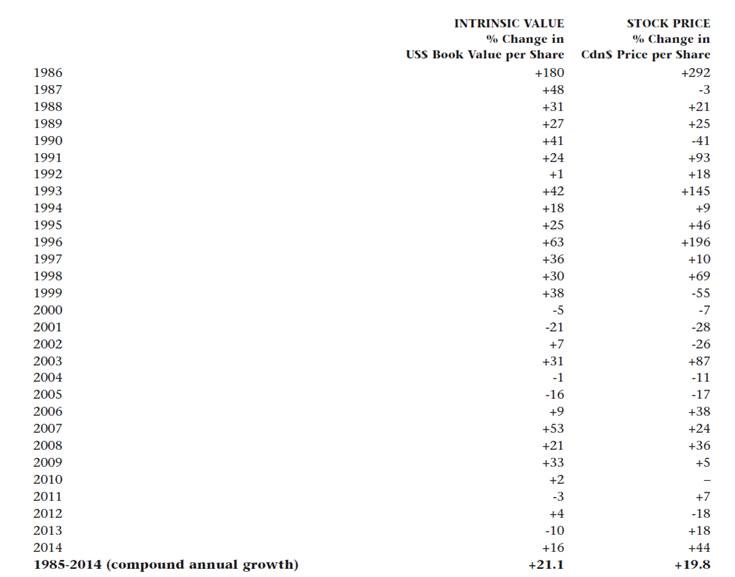 First, I’d like to display the Fairfax CAGR in Book Value as well as Share Price: