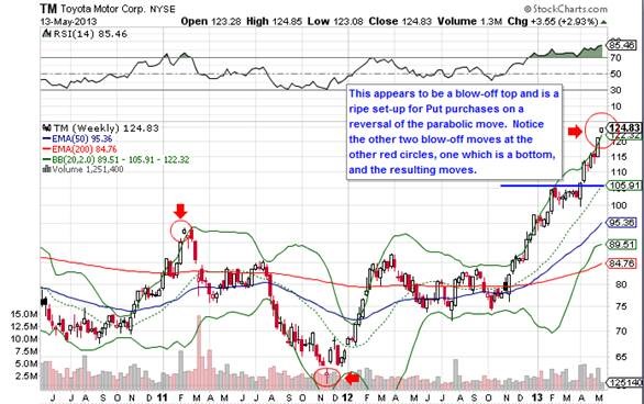 Recall the e-mail sent in May, “Step Right Up and Grab Your Short Opportunity,” and the Toyota recommendation. Observe the results in the original chart(5/13) and the follow-up chart(6/26):