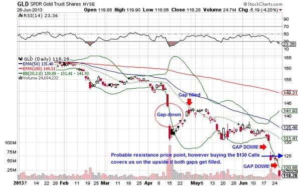 I had shared with a colleague that I had purchased Calls for September, but was mistaken. The trade is for the August Calls at a $130 strike on GLD. These Calls got killed on 6/26 and could have been purchased for $0.85 as of the close, which is when I purchased my allotment. I suspect the trade will be ready for liquidation at $125, but if paper gold is running kind of hot off of the snap-back then there is the potential for $130, in which case the option should be liquidated. It is probable by that point that the takedown will resume in paper gold as $1,200 has not been hit yet and potentially slightly below $1,200, just to run all the stops set at $1,200 for easy profit.